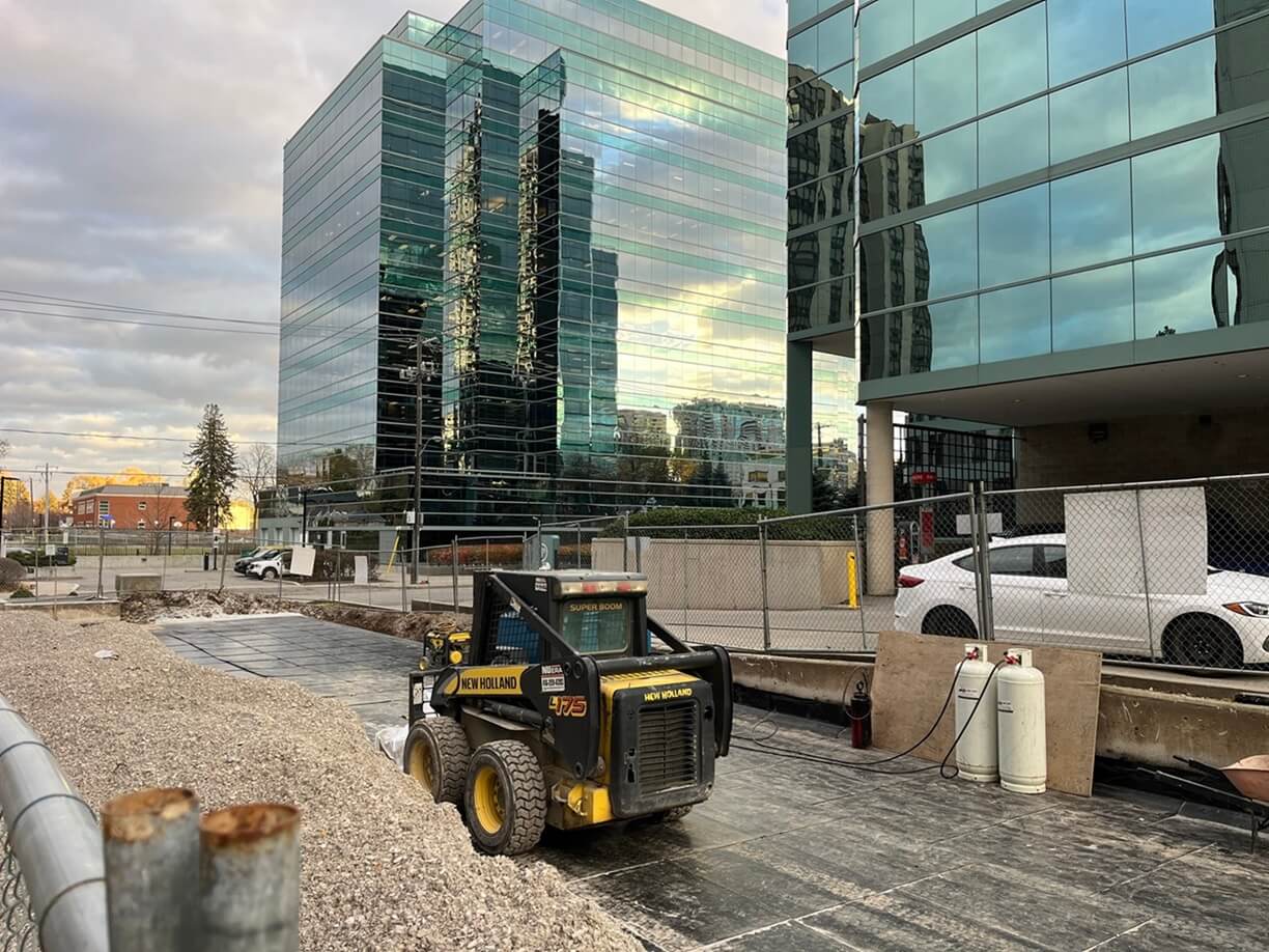 The ongoing project focuses on waterproofing repairs on the exterior roof deck above the parking structure. New waterproofing systems are being installed to ensure maximum protection, with drains and other key components repaired or replaced as needed.